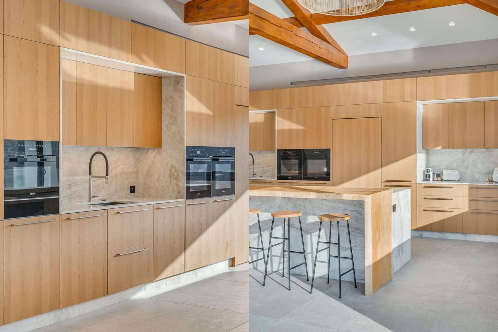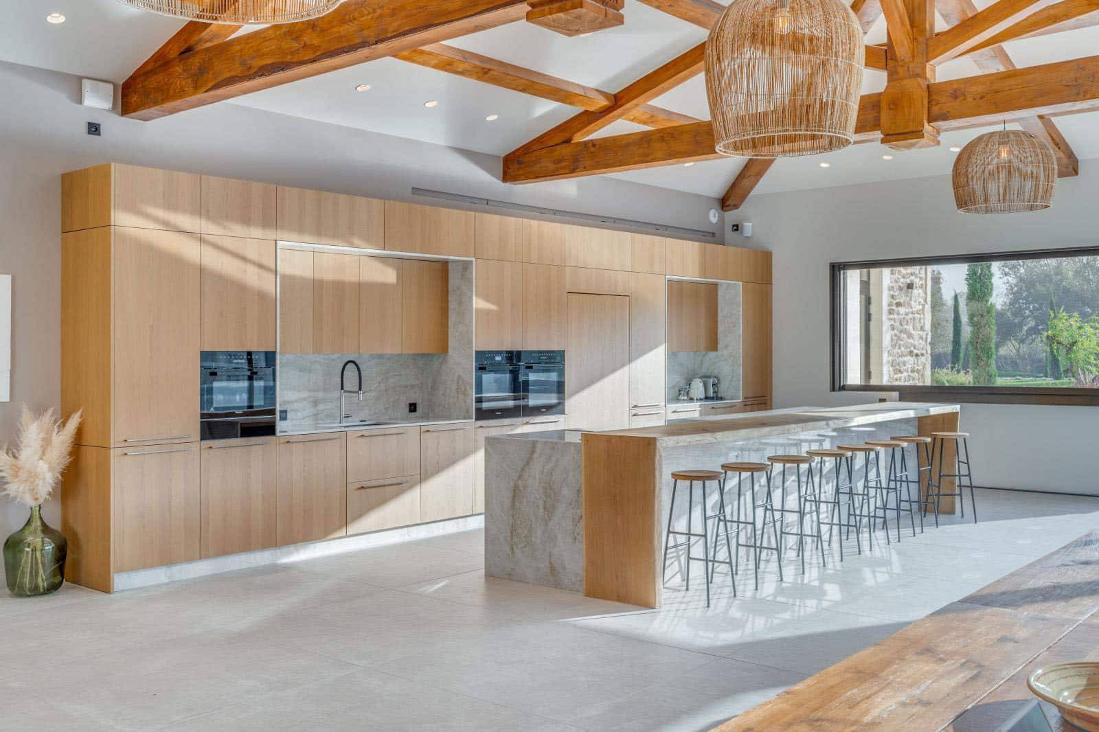 Conçue pour répondre aux exigences d’un art de vivre raffiné, elle marie avec subtilité des finitions en bois clair, apportant chaleur et douceur, à des éléments en pierre naturelle, gages de solidité et de caractère. Chaque détail de cette cuisine de luxe italienne a été pensé pour offrir une expérience culinaire haut de gamme, tout en s'intégrant harmonieusement dans une maison baignée de lumière située à Bandol.